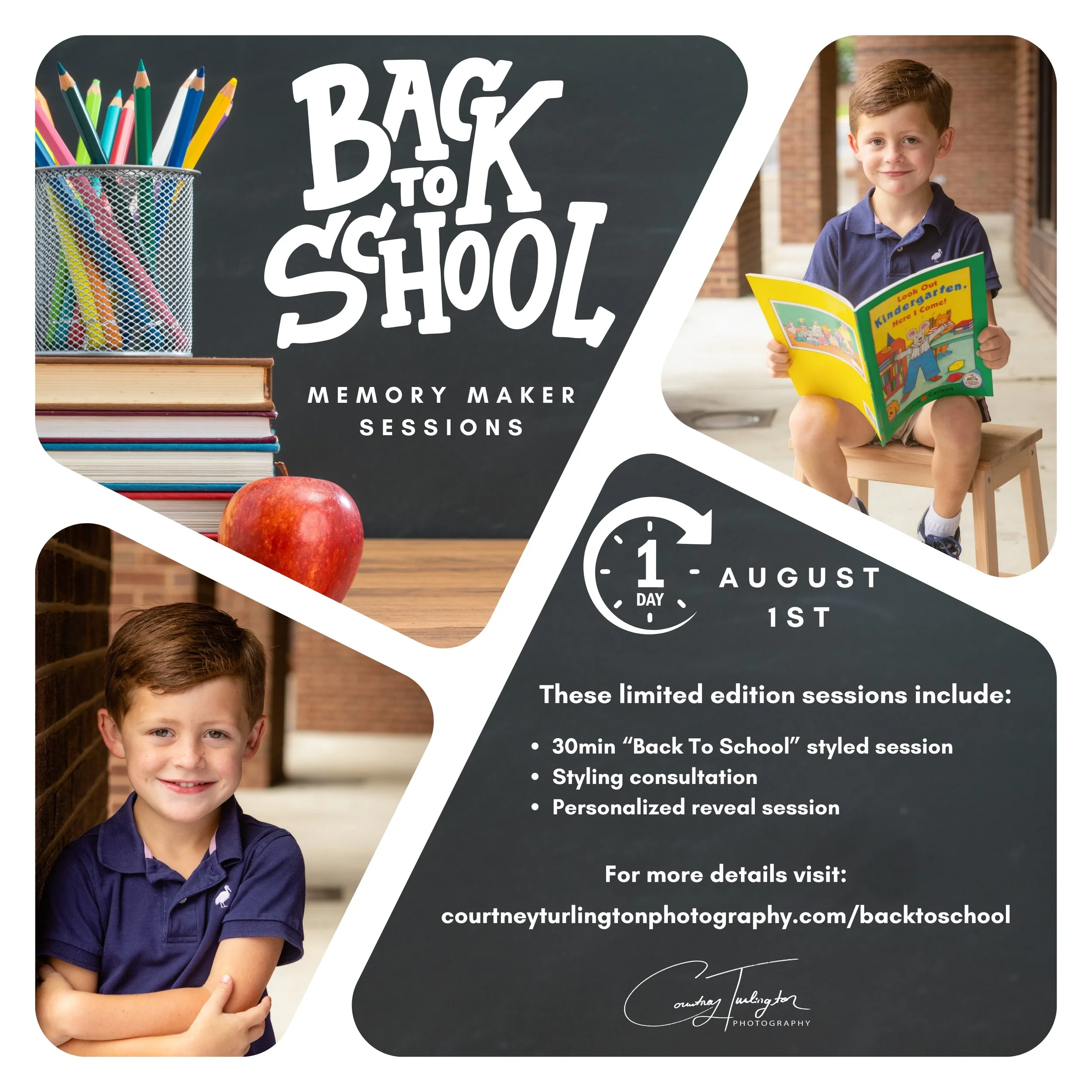 Back To School Memory Maker Sessions are perfect for children of all ages! These limited edition sessions are $185 and include a styling consultation and personalized virtual reveal session, where you’ll see all of your images for the first time and choose your favorites.