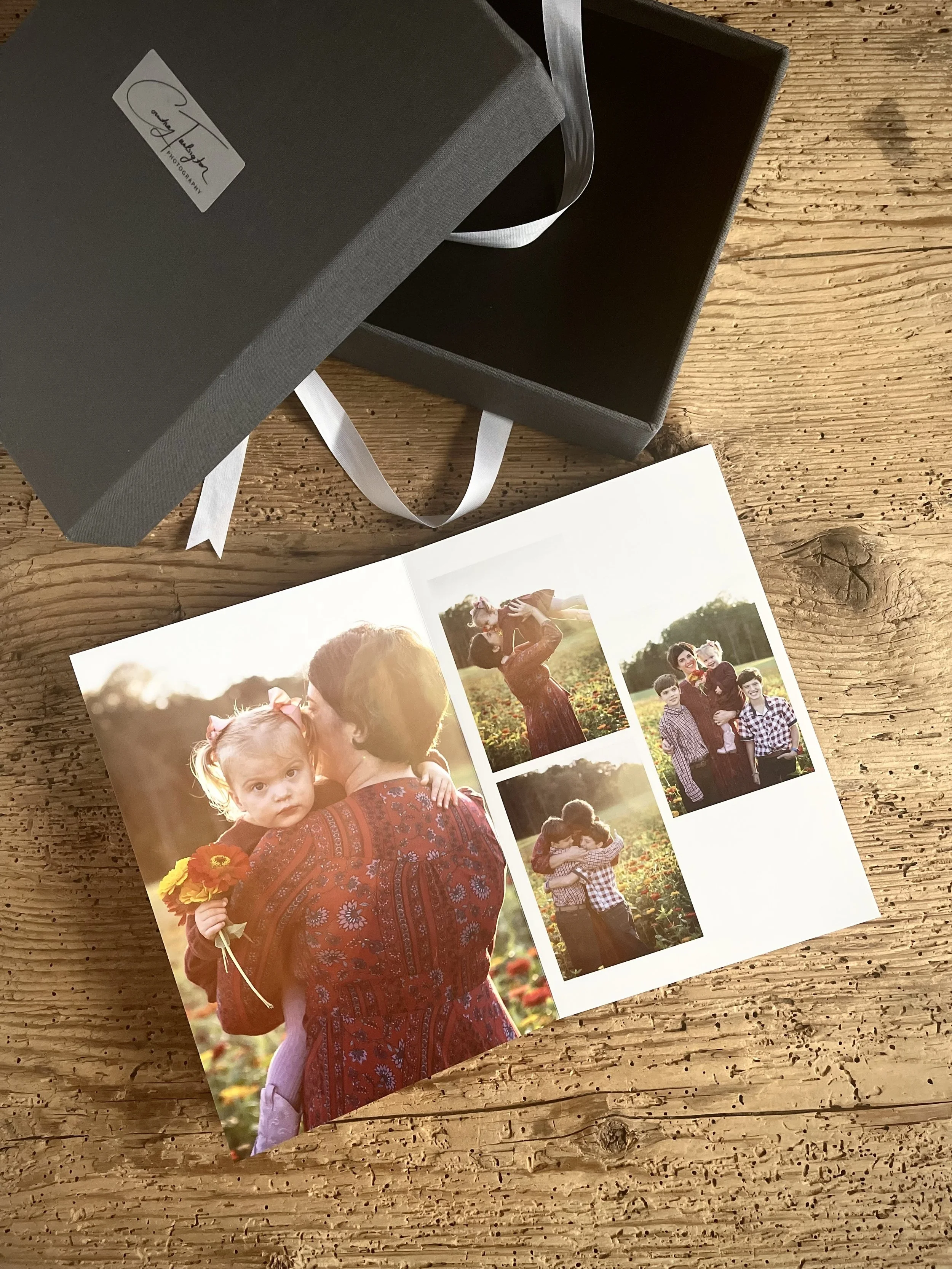 Preserve images from your session in a beautiful heirloom that will be handed down for generations. Each album is crafted with the highest quality materials and attention to detail.