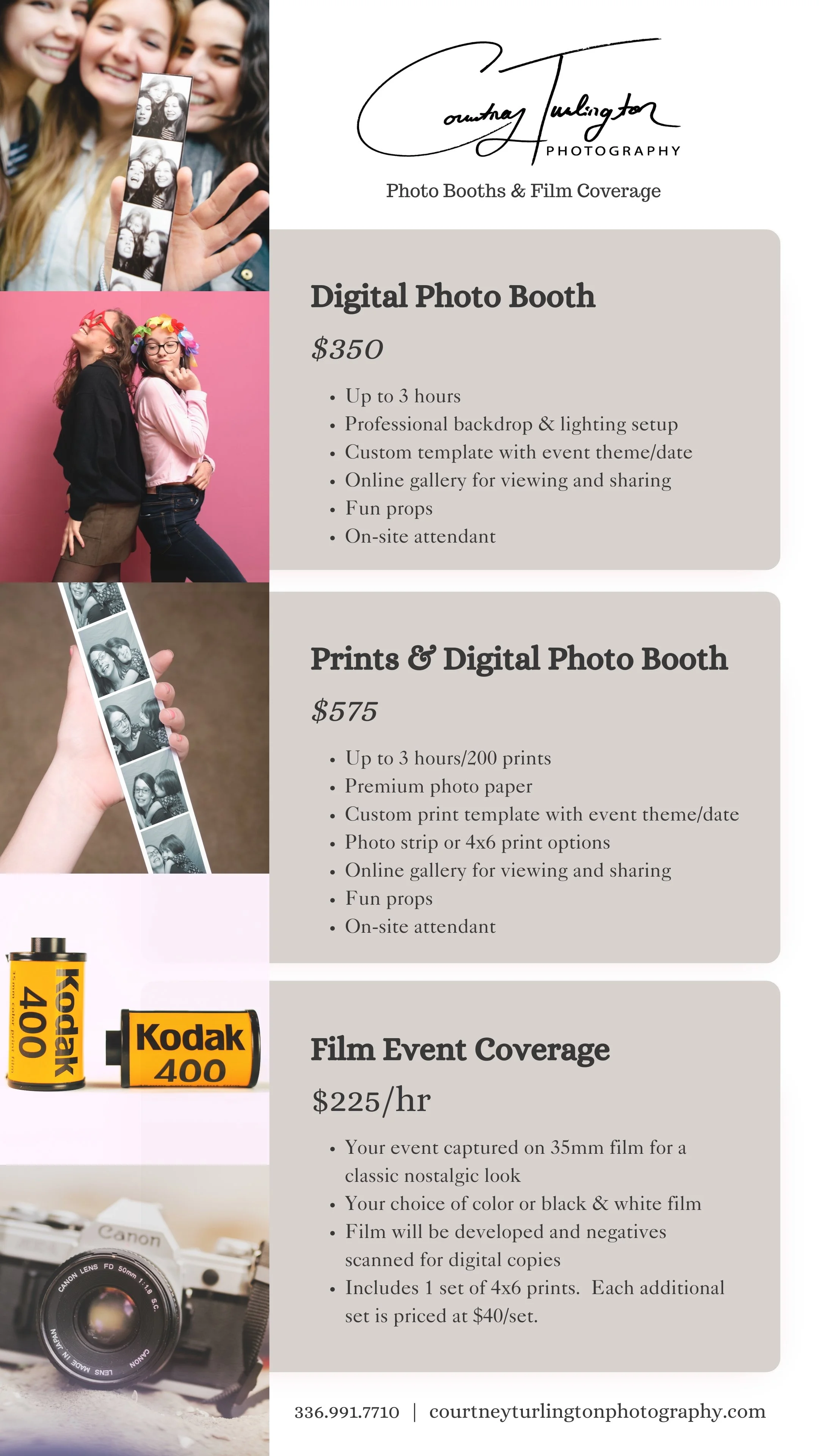 Ready to reserve your Photo Booth or photography coverage for your upcoming event? Please fill out the form below and Courtney will be in touch with the booking deposit payment link. Once the deposit is paid, your event date is secured on the calendar. Deposits are non-refundable. Remaining balances must be paid in full 14 days before the event.